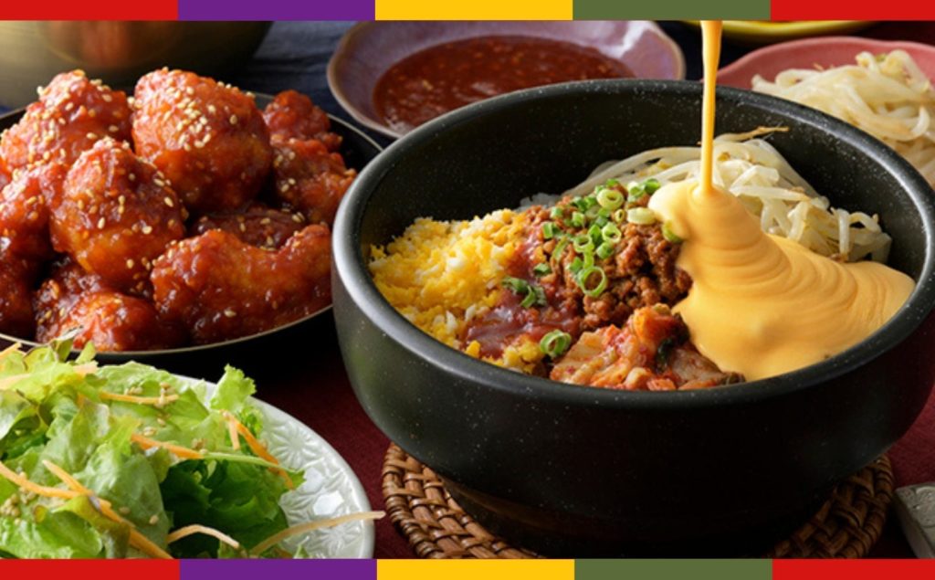 そして、ご飯が進む甘辛いヤンニョムソースがクセになる「ヤンニョムチキン」や、甘辛味噌で和えたひき肉や、キムチ、濃厚なチェダーチーズソースなどでオリジナルのアレンジが楽しめる「ビビンパ」。