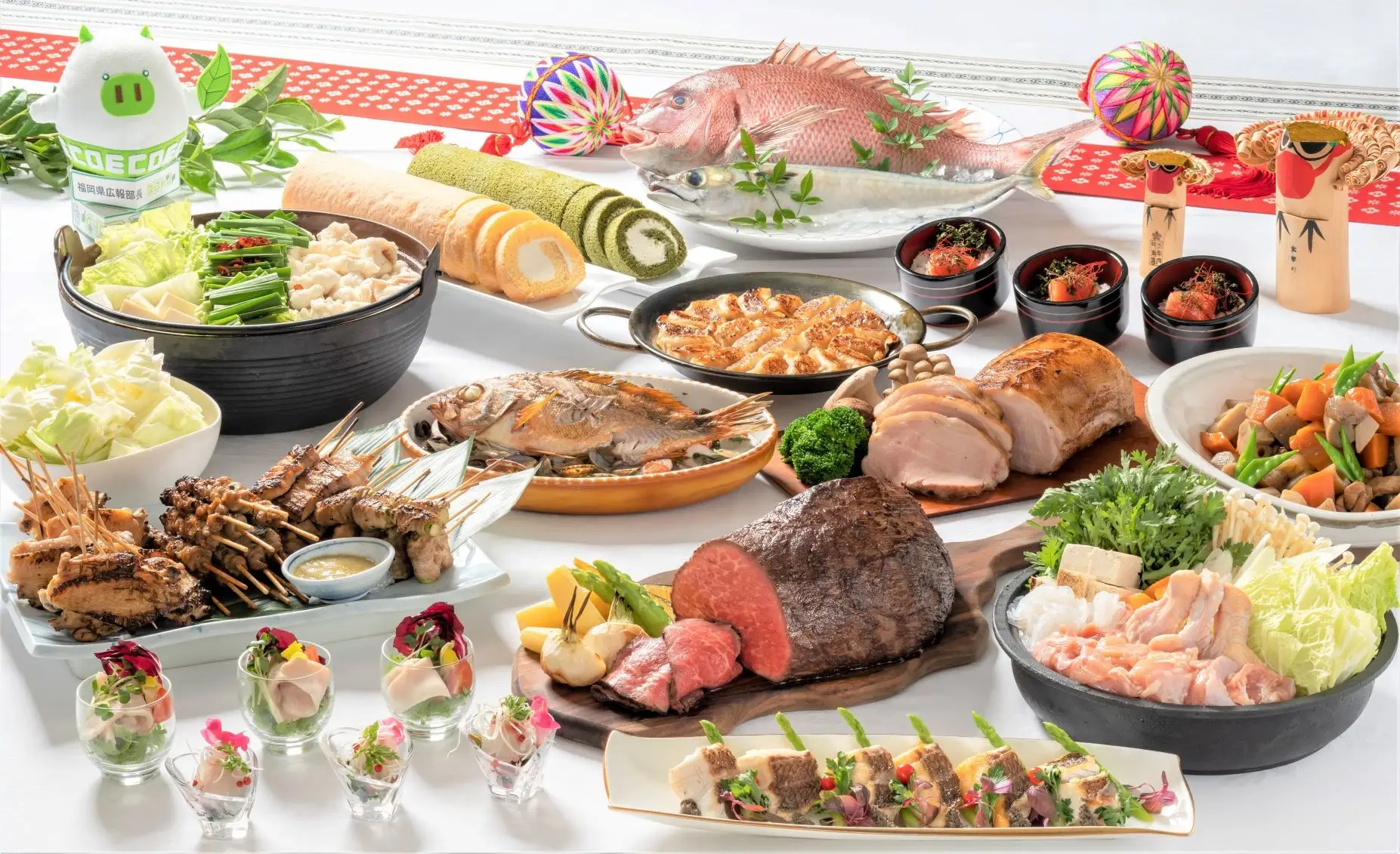 また福岡県最西部に位置し、豊かな食や観光地としての魅力がテレビやSNSでも話題となった糸島市より、糸島に面している海域「玄界灘」で獲れる良質な魚介類や、凝縮した旨みに、舌先でさらりととろける脂肪と柔らかくもしっかりとした味わいが特徴の「糸島豚」などもご用意します。この他、福岡県の銘柄鶏「はかた一番どり」の鶏すき、福岡有明のりを添えためんたいお重、鶏皮ぐるぐる巻き、一口餃子、そしてグループホテルである「ホテル日航福岡」監修のメニュー「がめ煮」「かしわ飯」など多彩な料理がご堪能いただけます。