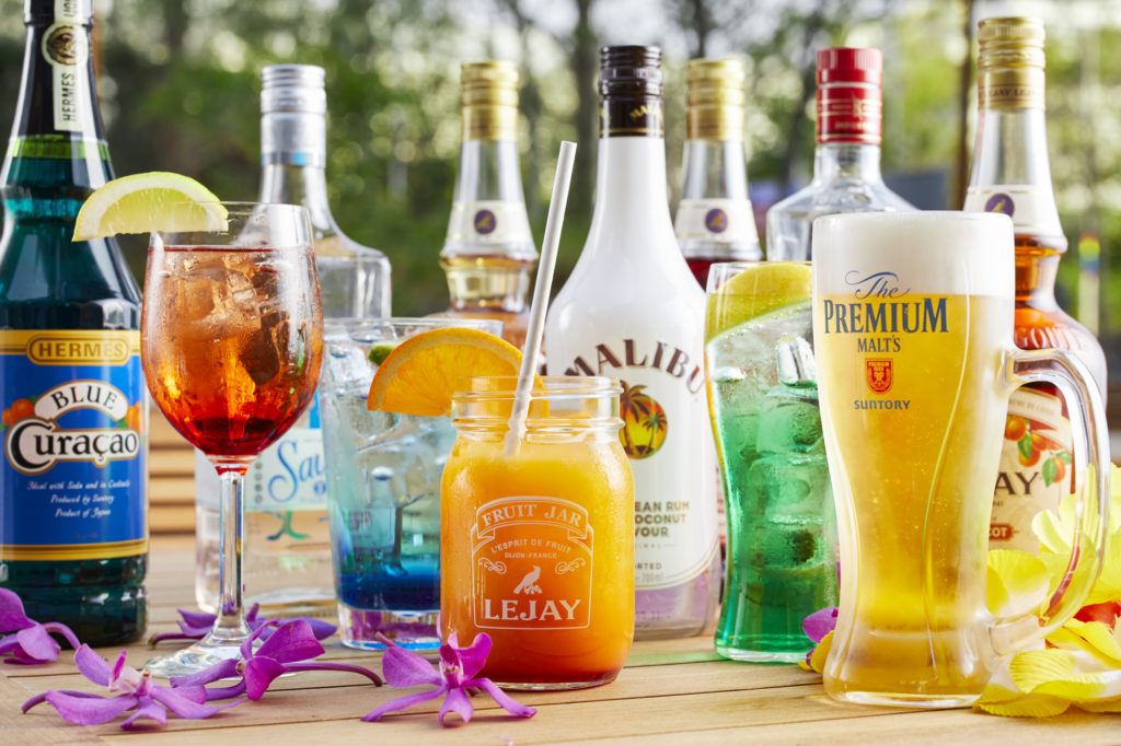 ドリンクコーナーは、ビール、ワイン、ハイボール、ソフトドリンクはもちろん、種類豊富なカクテルベースやリキュールが並ぶカクテルステーションを設置しソフトドリンクと組み合わせてハワイアンイメージのオリジナルカクテルを作ることもできます。