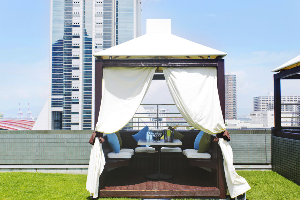 ハワイのリゾート気分とプライベート感をより一層満喫したい方には、ボトルシャンパン1本とフルーツプレート付の半個室ガゼボをご用意。(有料:1区画6,000円、2名~4名様用)。