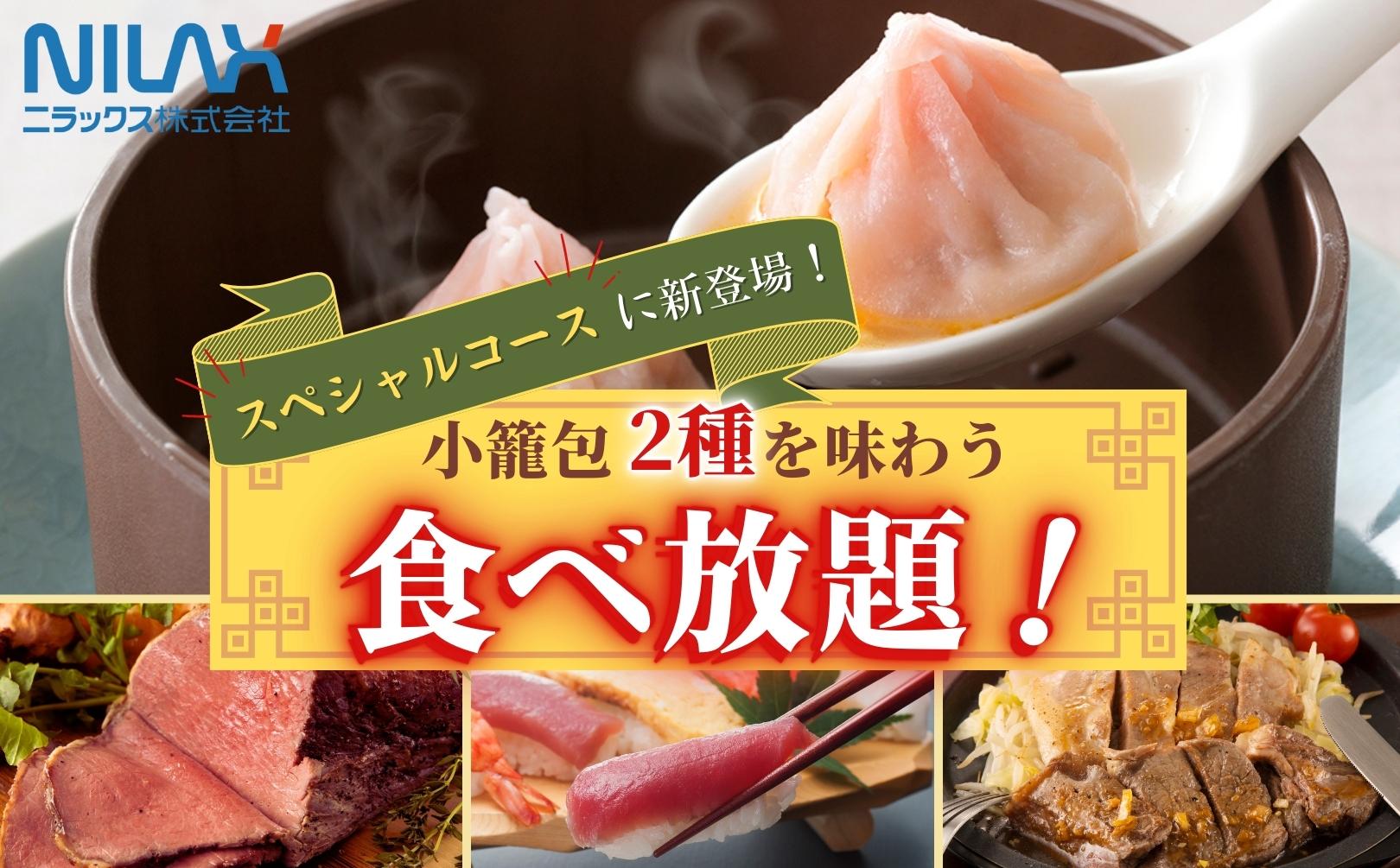 食べ放題のテーマパーク、 ニラックス株式会社が運営する「エクスブルーららぽーと横浜店」にて、2022年5月12日(木)より、大人気のスペシャルコースに『蟹小籠包』が新登場いたします!