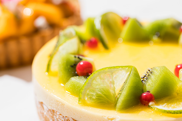 マンゴー、キウイなどトロピカルフルーツやメロンをたっぷりと乗せた人気のタルトや、カラマンシーとココナッツのシャルロット、リコッタチーズとマンゴーのコロネ、トロピカルフルーツのサングリア、キャラメルバナナプリン、メロンのショートケーキ