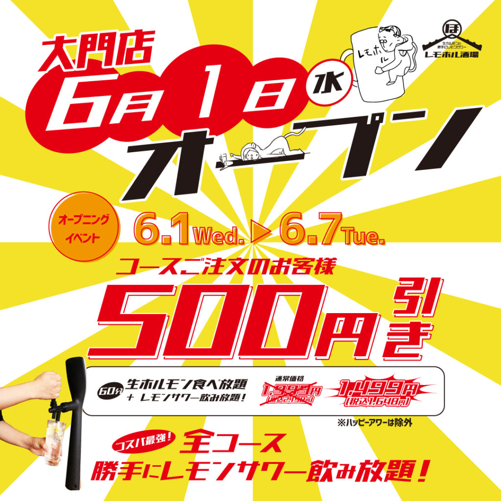 6/1(水)「レモホル酒場 」大門店、堂々OPEN!!