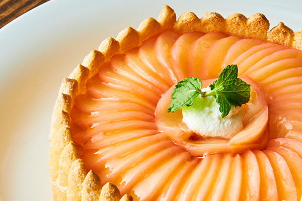 お時間限定の「タイムサービス」では、中国料理から“山形県産野菜入りふかひれ丼”が登場します。山形県産の野菜やきのことふかひれを醤油ベースのあんかけで仕上げました。また、ランチタイム限定のおすすめスイーツ“山形県産黄桃のタルト”はアーモンドクリーム、カスタードの上にシロップ漬けの黄桃の果肉をたっぷり乗せました。