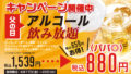 終日アルコール飲み放題999円(税込1,099円)キャンペーン概要