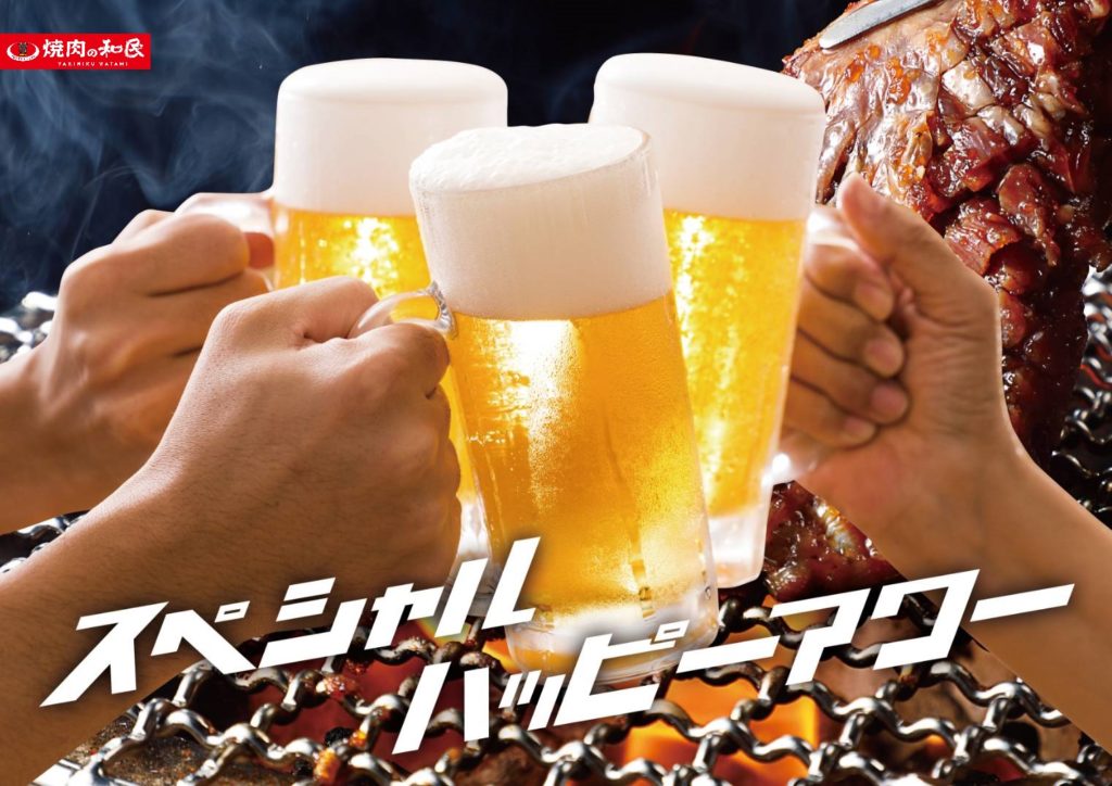 ワタミ株式会社(本社:東京都大田区、以下ワタミ)は全国で展開する、高品質な焼肉をリーズナブルな価格で提供する「焼肉の和民」で2021年6月21日(月)~6月28日(月)の期間中、外食におけるアルコール類提供の解除に伴い全店舗にて「スペシャルハッピーアワー」を実施いたします。
