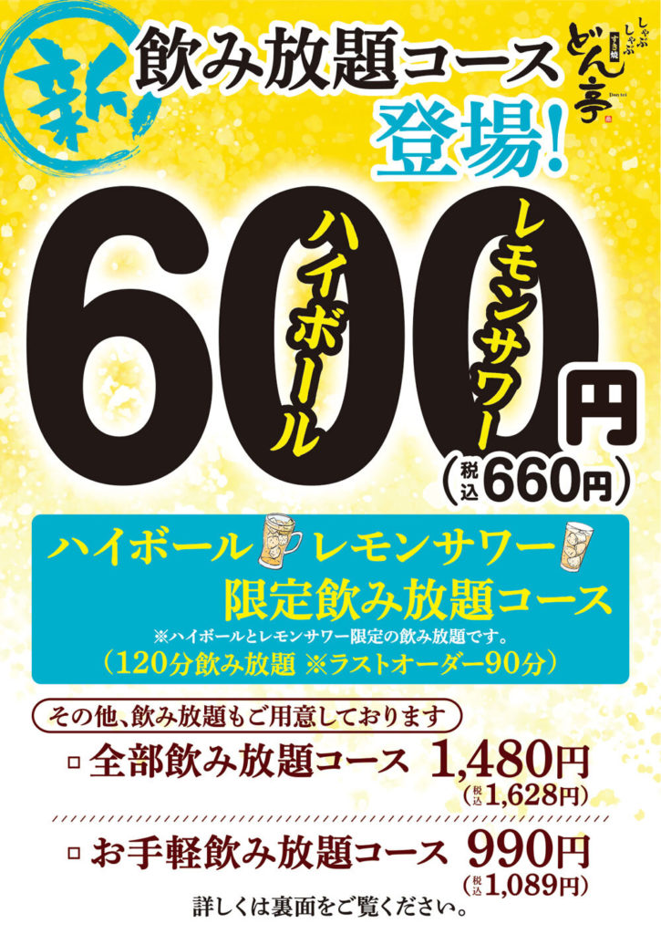 どん亭「ハイボール・レモンサワー限定飲み放題コース」概要