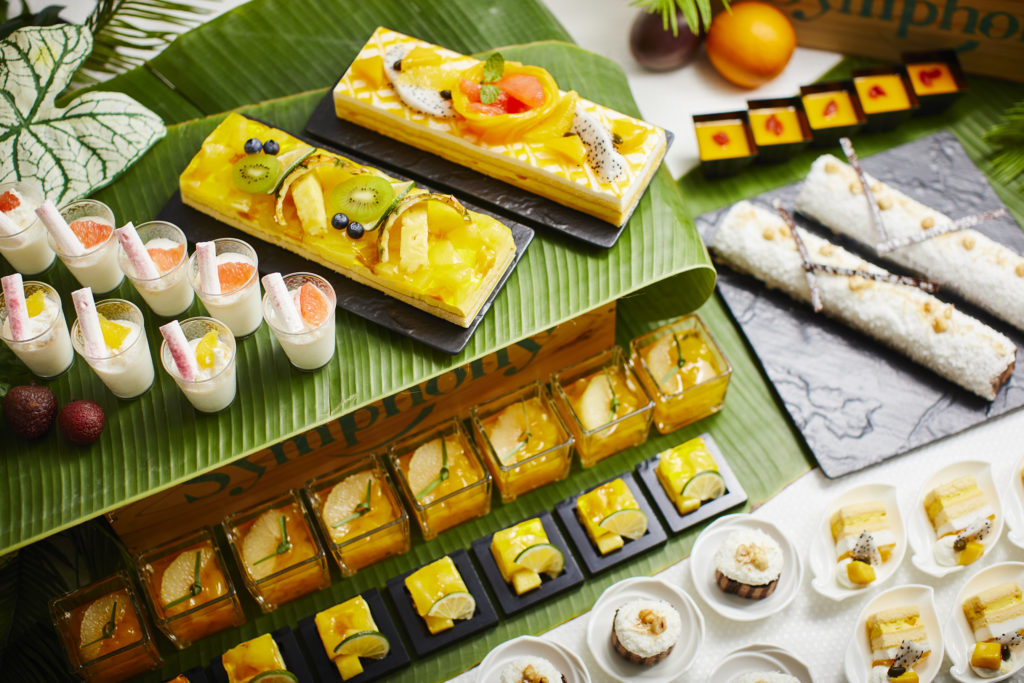 スイカやパイナップル、ブドウなど果実の恵みを堪能できるフルーツをはじめ、果肉をぎゅっと閉じ込め、食べ応え十分な“パイナップルとマンゴーのガトームース”や、ココナツの優しい味わいに甘酸っぱいグレープフルーツとサクサクのメレンゲを合わせた“ココナツのグラスデザート”、マンゴーの甘味を生かした濃厚な味わいの“マンゴープリン”など、彩り豊かなスイーツが並びます。