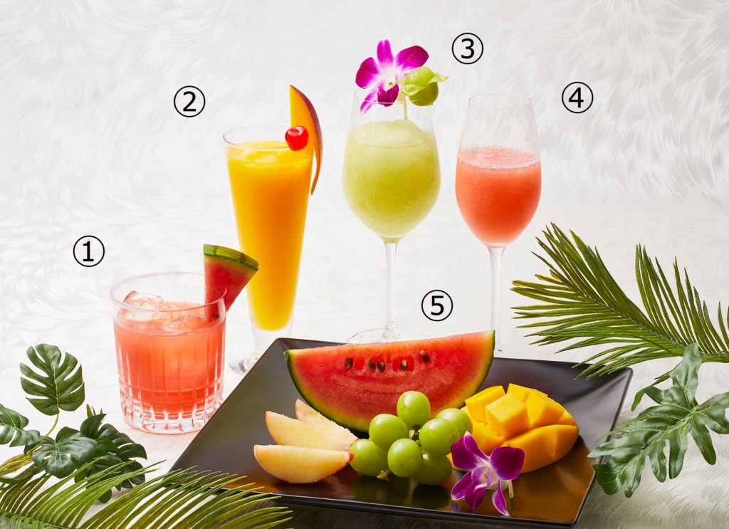 地下1階「ロイヤルスコッツ」では、真夏の夜を彩る創作カクテルが登場。濃厚なマンゴーの甘味を存分に楽しめる“マンゴーダイキュリ”や、すっきりとした味わいの“マスカットカクテル”、桃の優しい甘味が引き立つ “白桃のベリーニ”のほか、本来グレープフルーツを使用するソルティードッグを、今回はスイカでアレンジ。相性の良いウォッカや塩を合わせ、甘みと味に深みが増すように仕上げました。また、お好みのお酒と一緒にフルーツをお楽しみいただけるよう、盛合せもご用意。色鮮やかな果実の美味しさを最大限引き出すようバーテンダーが趣向を凝らした一杯で、贅沢なひとときをお過ごしください。