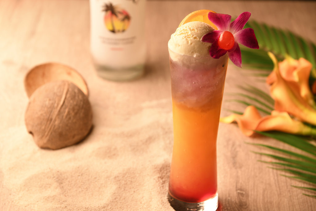 「ココナッツグレン」からジンジャーレモングラスフレーバーのアイスクリームを使用した 「大人のクリームソーダ風」アレンジカクテル。ハワイのサンセットをイメージした色合いで 見た目もお楽しみいただける一杯です。