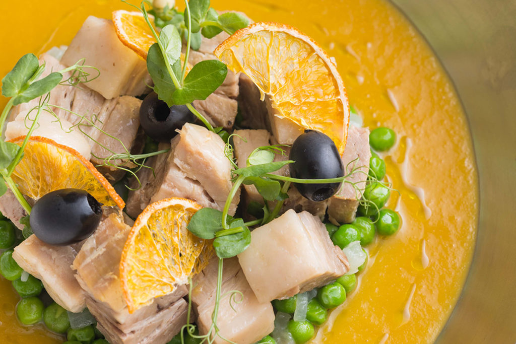 島根県産ケンボロー芙蓉ポークとグリーンピースの煮込み オレンジ風味