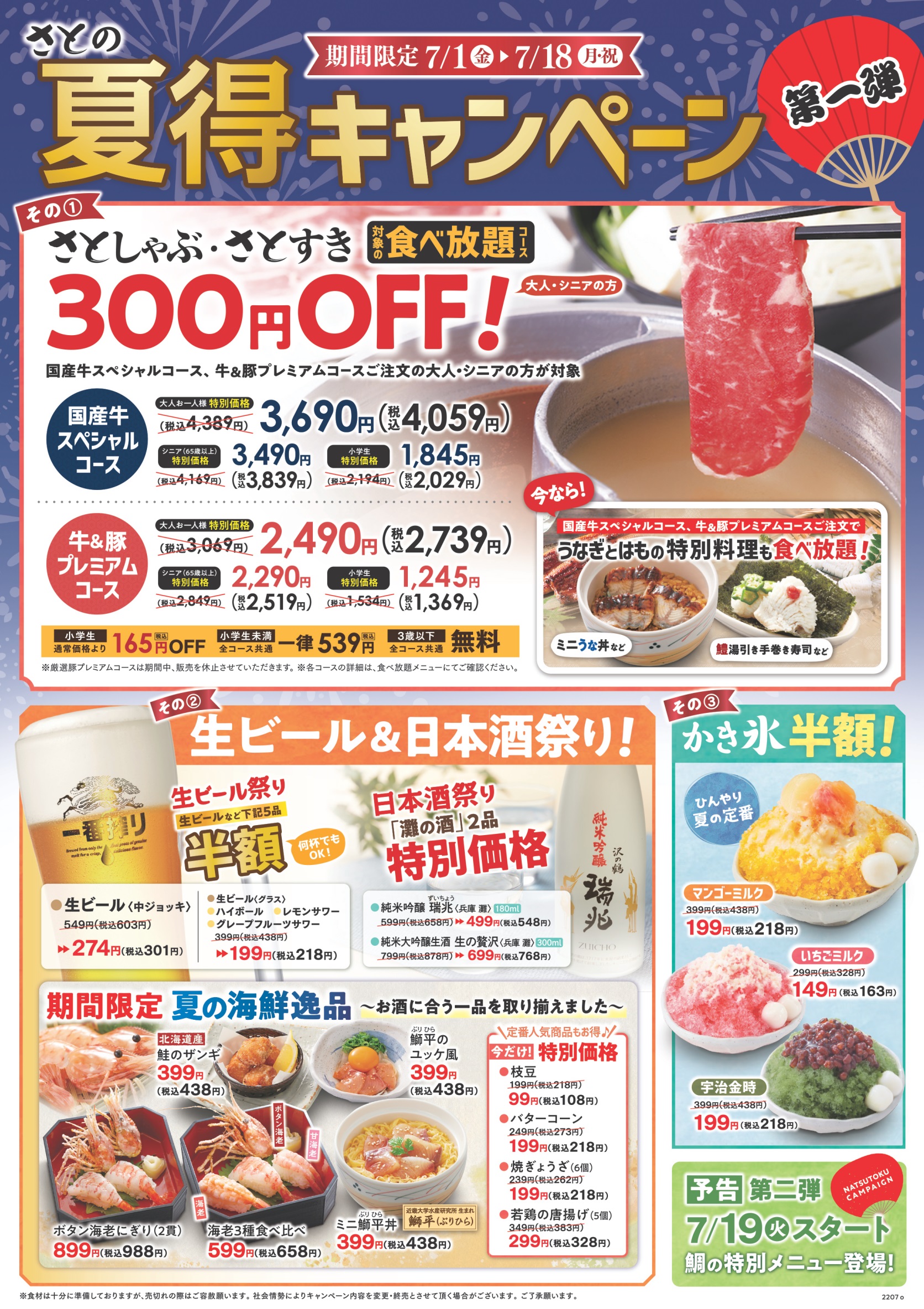 このお得な機会に、和食さとの「夏得キャンペーン」をご利用いただき、楽しい食事のひとときをお過ごしください。