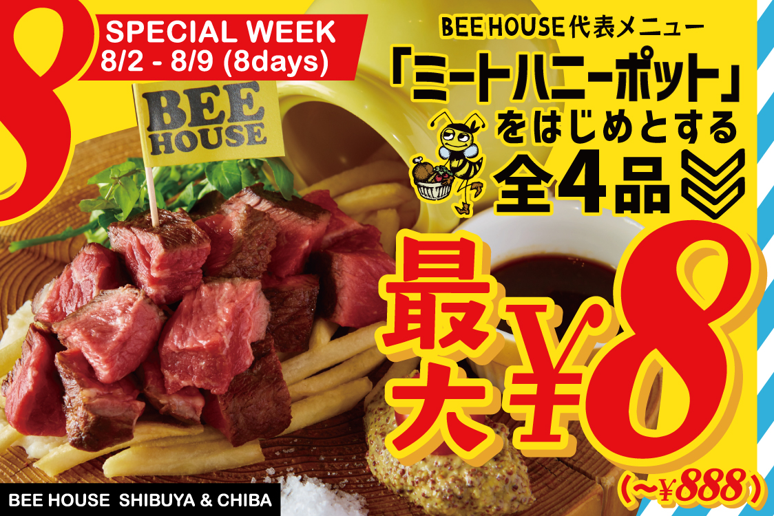 - 8月8日の”蜂の日”より8日間!全4品がお得に!<BEE HOUSE DAY SPECIAL WEEK>2店舗同時開催