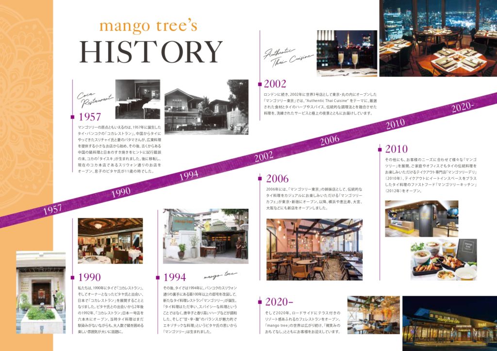 タイ・バンコクに1994 年に創業し、ロンドン、日本、ドバイ、香港と世界各国に展開するタイ料理レストラン「mango tree」。「マンゴツリー」は1994年、タイ・バンコクのスリウォン通りの裏手にある築100年以上の邸宅を改装して作られたタイ料理レストランで、ロンドンに続き2002年に世界3号店として東京店がオープンし、”Authentic Thai Cuisine”をテーマに、日本の厳選された食材とタイのハーブやスパイス、伝統的な調理法を融合した料理を、洗練された空間とサービスとともにお届けしています。「マンゴツリー東京」は、タイ国商務省の審査で5つ星にあたると評価されたレストランに与えられる“THAI SELECT Signature”(タイ・セレクト・シグネチャー)を取得しています。