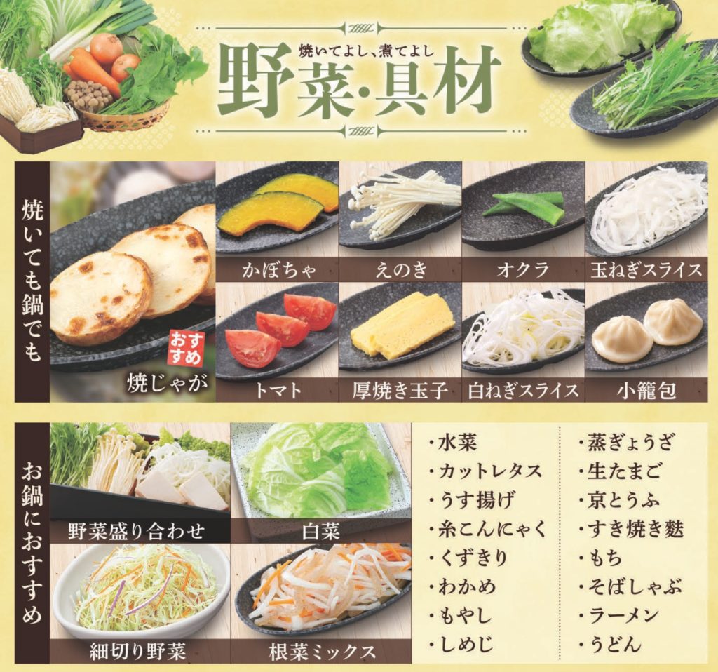 焼肉でお肉をいっぱい食べたいけど、やっぱりお野菜もしっかり食べたい方にもぴったりな食べ放題です。