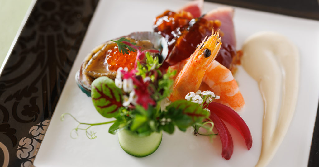 日本最北の村「猿払」で取れた肉厚の帆立貝柱のソテー、逸品ワンプレート「浅草アミューズ」は、浅草老舗店の漬物を取り入れた斬新な一品。ゴールデンウィーク限定での登場です。