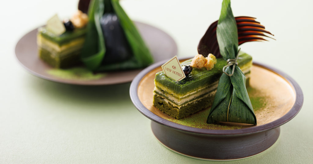 そして、初夏の新緑を感じさせるグリーンカラースイーツ。抹茶のケーキに、パフェの数々、マカロンと、グリーンカラーで彩りました。