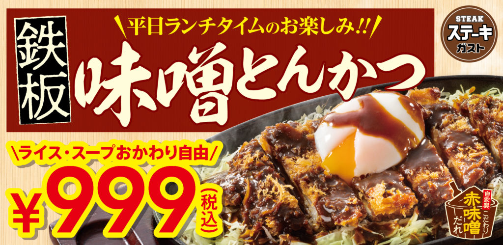 | 【平日ランチ限定 鉄板とんかつ おすすめポイント】 ①ランチにぴったり!ご飯がすすむ自家製赤味噌だれの”鉄板とんかつ”新登場 1枚ずつ丁寧に手で衣付けした手仕込みのロースとんかつを熱々鉄板の上に乗せて、自家製赤味噌だれをたっぷりとかけました。ガッツリ食べたいときに、食欲そそる逸品です。 ②平日ランチ限定!約20種が食べ放題の”健康サラダバー”が+税込440円 サラダ・日替わりカレー・パン・ライス・スープ・デザート等が食べ放題の大満足セットメニューをお得な価格でお楽しみいただけます。 |