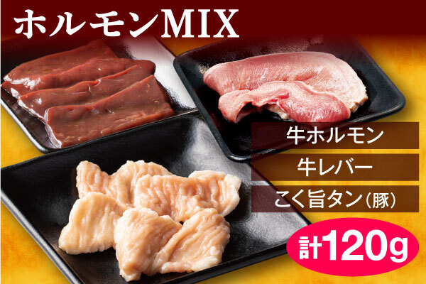 ●「ホルモンMIX」120g:(内容)牛ホルモン、牛レバー、こく旨タン(豚)