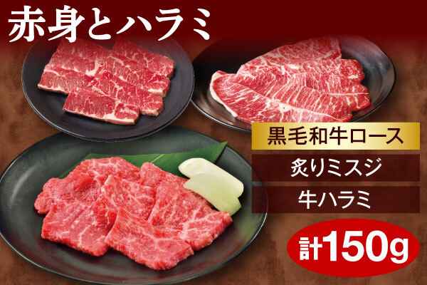 ●「赤身とハラミ」150g:(内容)黒毛和牛ロース、炙りミスジ、牛ハラミ