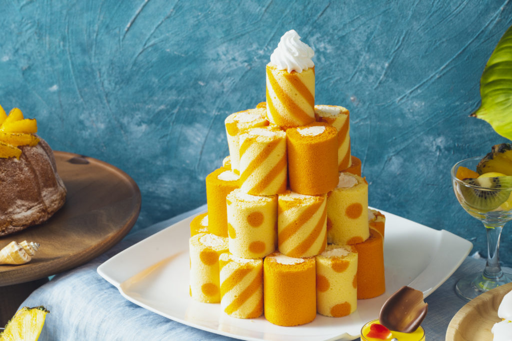 マンゴー風味のスポンジと果肉入りのマンゴークリームで見た目もキュートなロールケーキタワーは、大人心をくすぐる遊び心の詰まった一品です。
