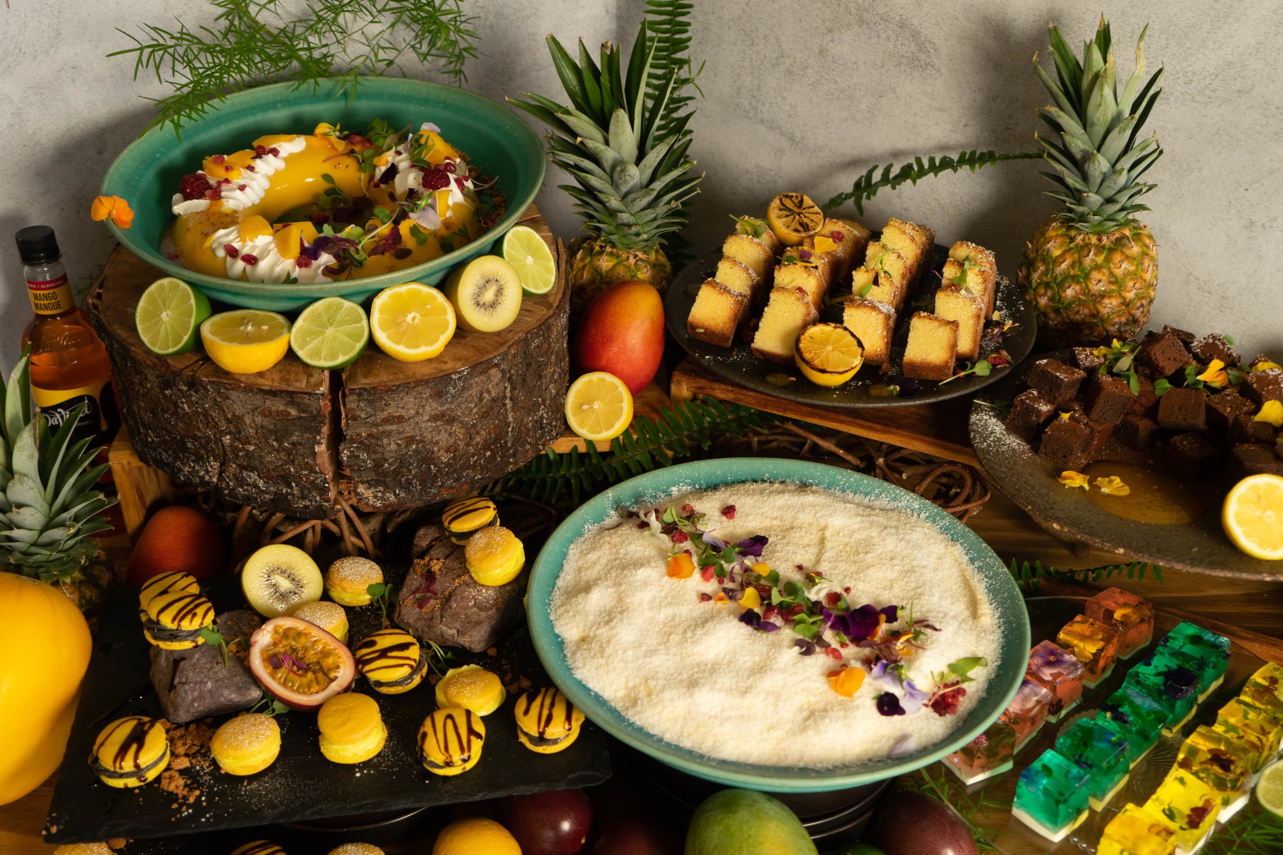 夏季限定の「太陽のマンゴーフェア」では、マンゴーをはじめとした夏のフルーツを使用したスイーツを楽しめます。一口サイズの軽い口当たりのマンゴーマカロンや、ぷるぷる濃厚なマンゴープリン、ココナッツファインをふんだんに使用した真っ白なティラミスなど。夏を感じる色鮮やかなスイーツで夏のビュッフェをお楽しみいただけます。