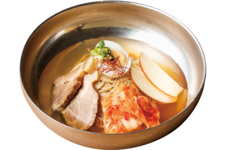 冷たい氷結スープと韓国風のこだわりの麺の組み合わせは焼肉のあとにピッタリ。さっぱり食べられる安楽亭不動の人気を誇る逸品です。