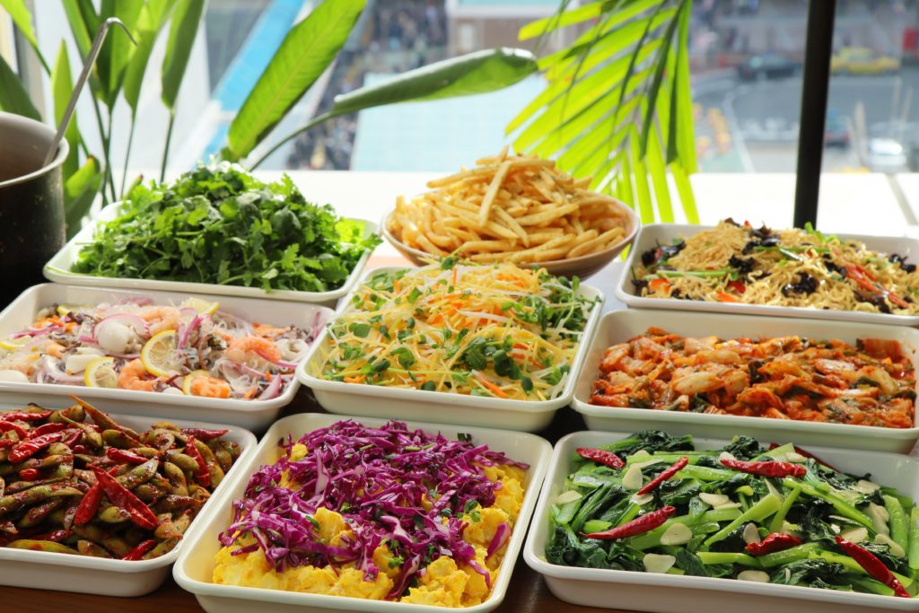 麻辣豚カルビやごま味噌豚肩ロース、旨辛鶏せせりなどさまざまな味付けのお肉や、彩り豊かなエスニック・タパスが食べ放題。さらに、お子様が大好きなハンバーグやカレー、ポテトやかき氷など、バラエティに富んだメニューがバイキングスタイルでお楽しみいただけます。
