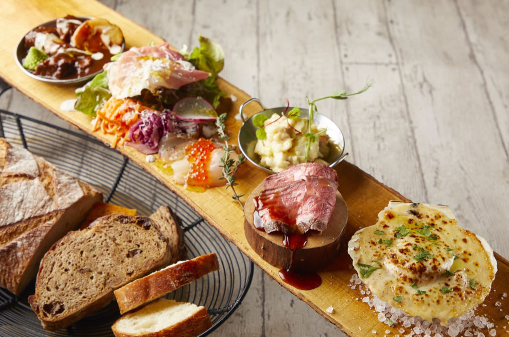 ステーキやグラタン、ビーフシチューなど。色々なメインと焼き立てパンをお楽しみください。