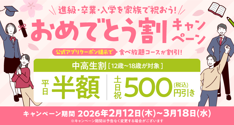 しゃぶしゃぶ温野菜、中高生向け食べ放題が平日半額に!『おめでとう割キャンペーン』実施