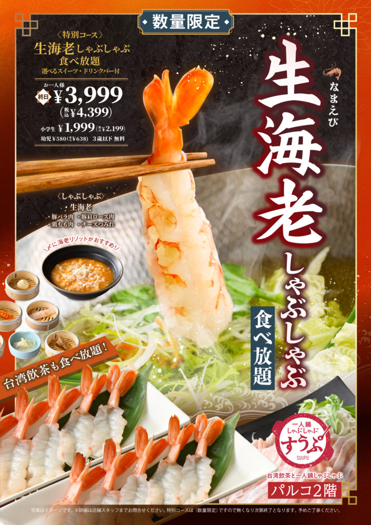 ニラックス株式会社が運営する「一人鍋しゃぶしゃぶ すうぷ 静岡パルコ店」は、2026年2月12日(木)より、数量限定で『生海老しゃぶしゃぶ』の食べ放題特別コースの提供を開始します。