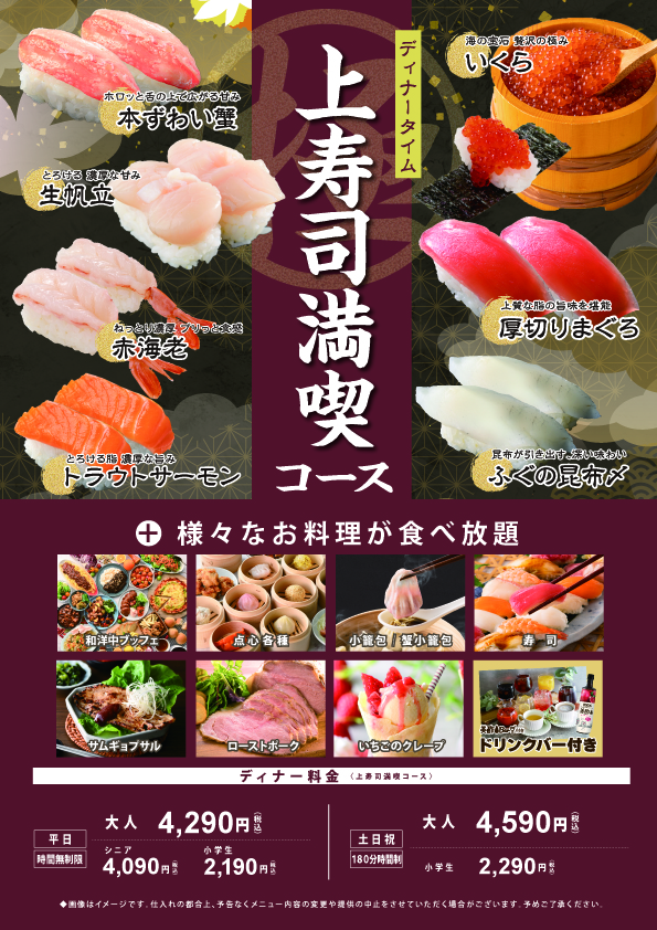 この度のレギュラー化により、いつでも上質なにぎり寿司と豊富なブッフェ料理を、心ゆくまでお楽しみいただけます。