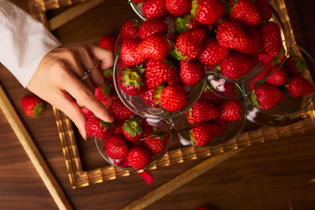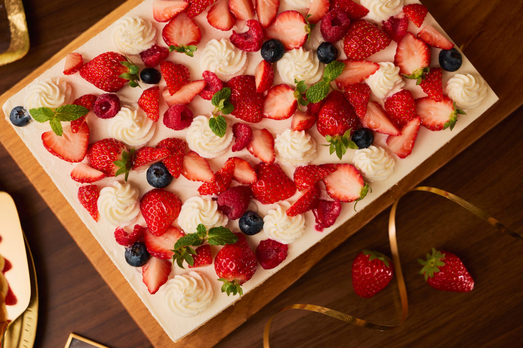 「Renewal」の「RE:」を冠した本ビュッフェは、新しく生まれ変わる「All Day Dining La Jyho」の門出を祝うテーマです。ウェルカムドリンクとフィンガーフードでゲストをお迎えし、心躍る体験が始まります。ビュッフェ台には、5種類のフレッシュなブランドいちごが並ぶほか、ホテルメイドの多彩なスイーツが登場。ショートケーキやパンナコッタ、いちご大福など、いちごを贅沢に使った美しいデザートがテーブルを彩ります。