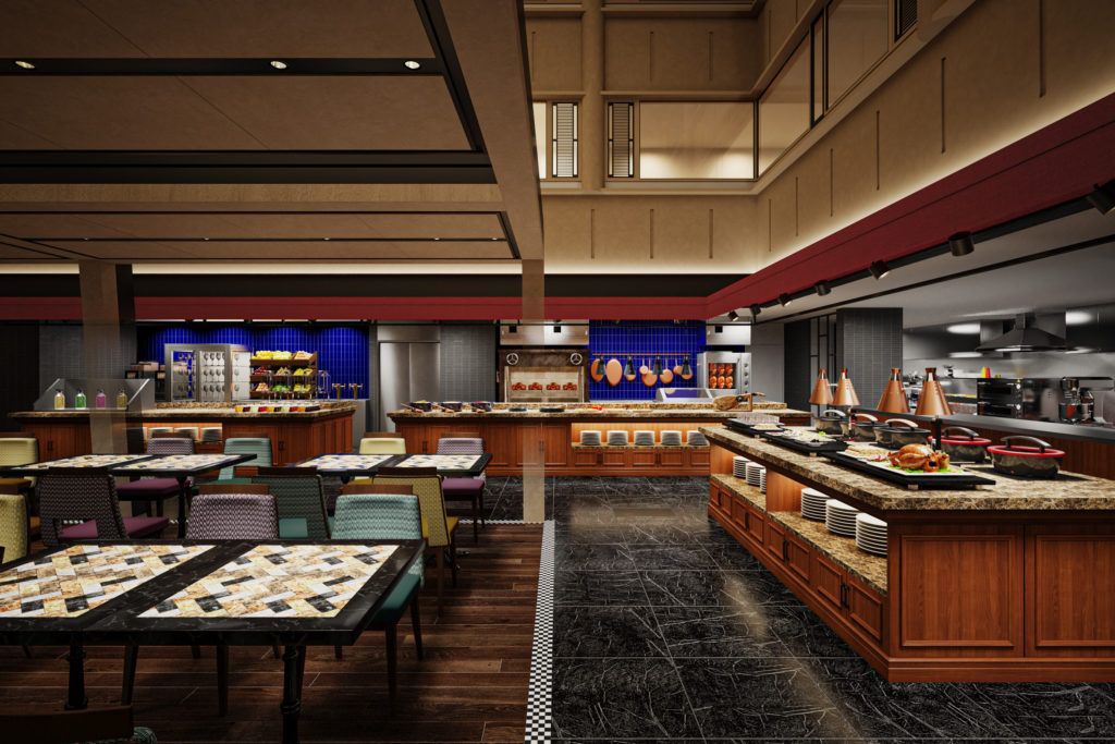 本ビュッフェは、京都センチュリーホテル2階の「All Day Dining La Jyho」にて、15時30分から17時00分までの90分制で開催され、料金は大人6,800円(サービス料・消費税込み)です。前日までの完全予約制となります。新しい空間で、煌びやかな午後のひとときをお過ごしいただけます。