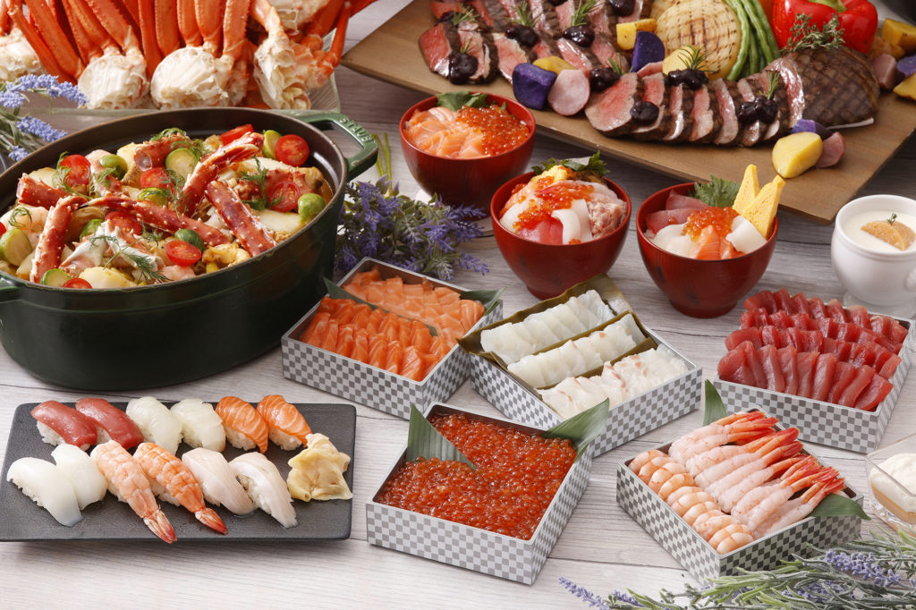 本フェアでは、北海道出身の料理長・佐藤克紀氏が手掛ける道産食材尽くしの料理を提供します。最大の目玉は、平日限定で楽しめる北海道直送の紅ズワイ蟹の食べ放題です。また、9種類の具材から選べる海鮮丼、職人が目の前で握る寿司(ランチ3種、ディナー6種)など、五感で味わうライブ演出を楽しめます。