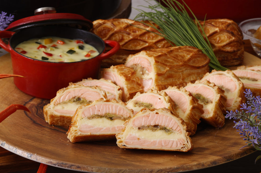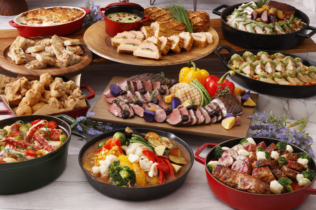 そのほか、北海道産牛肉のローストビーフやエゾ鹿、雲丹、フォアグラなど豪華食材をアレンジした逸品、知床サーモンのパイ包み焼き、北海道産シーフードのブイヤベースなど、海の幸を存分に楽しめる多彩なメニューが並びます。札幌ラーメンサラダやスープカレー、ザンギ&イモフライといったご当地グルメも充実し、目の前でチーズを削りかける味噌ラーメンなど、出来立ての美味しさを追求した工夫が凝らされています。