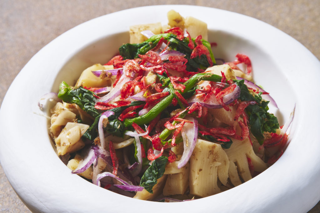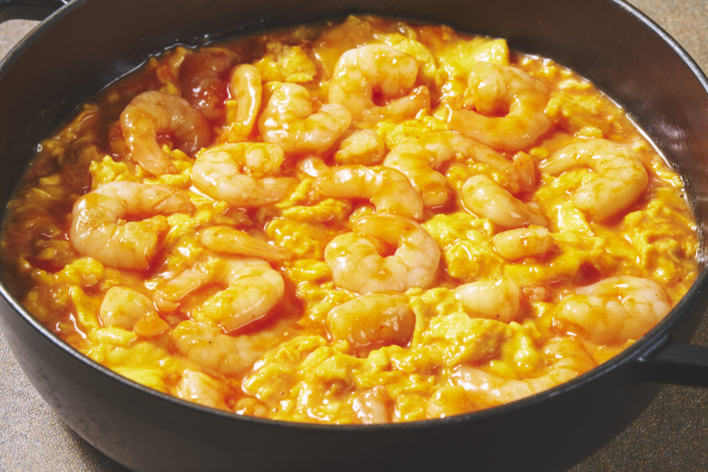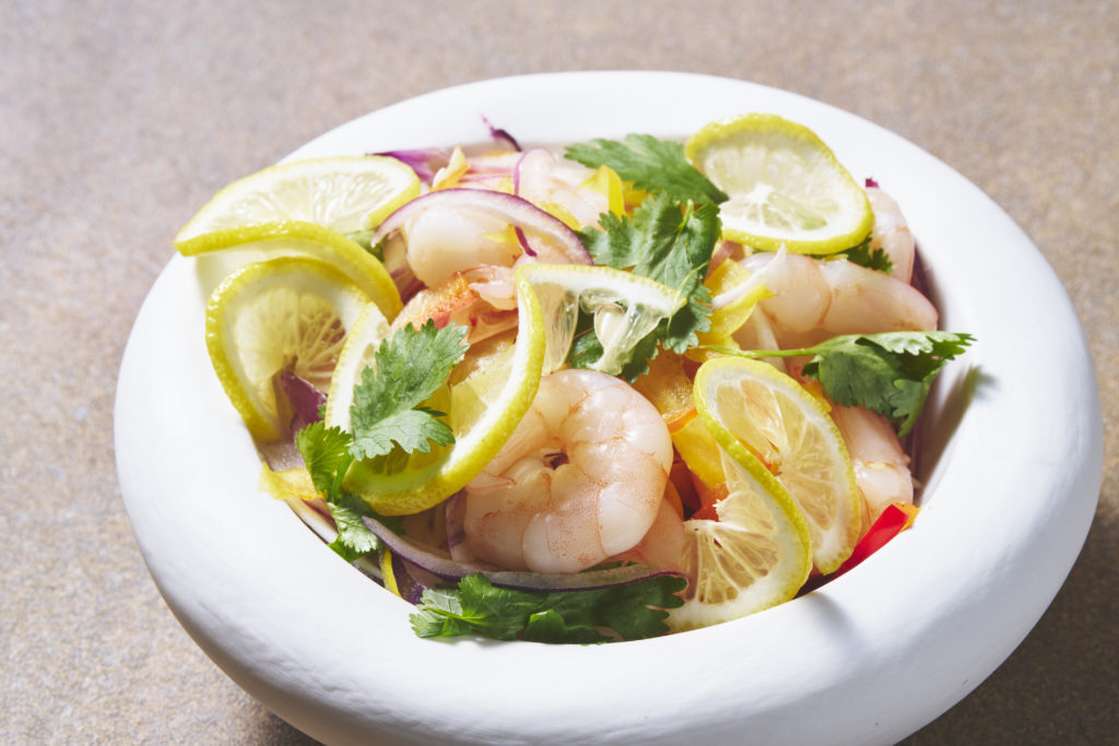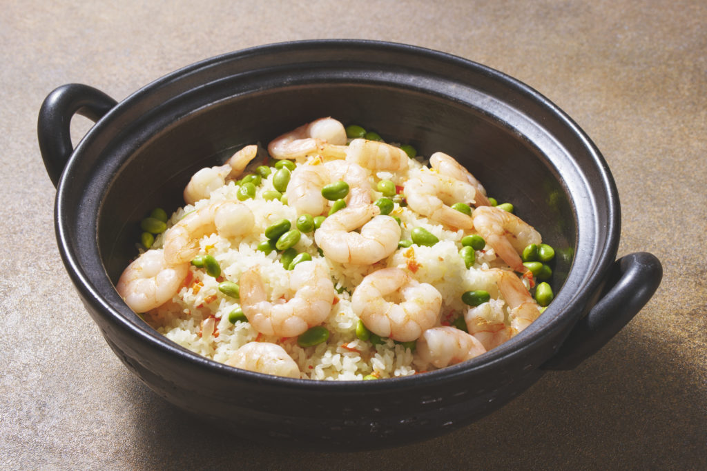 3回目となる今回は、人気の定番メニューに加え、シェフが海老の新たな魅力を引き出した斬新な一皿を多数ラインナップし、進化を遂げています。ライブキッチンでは注文後に揚げる「海老の黄金衣揚げ」が提供され、揚げたてならではの香ばしさを楽しめます。また、特製ソースにじっくり漬け込みソテーする「香味に溺れ海老」は、エスニックテイストの奥深い味わいが特徴です。「桜海老と筍のサラダ」や、〆の一品として「焼きおにぎり de 海老茶漬け」も用意されます。