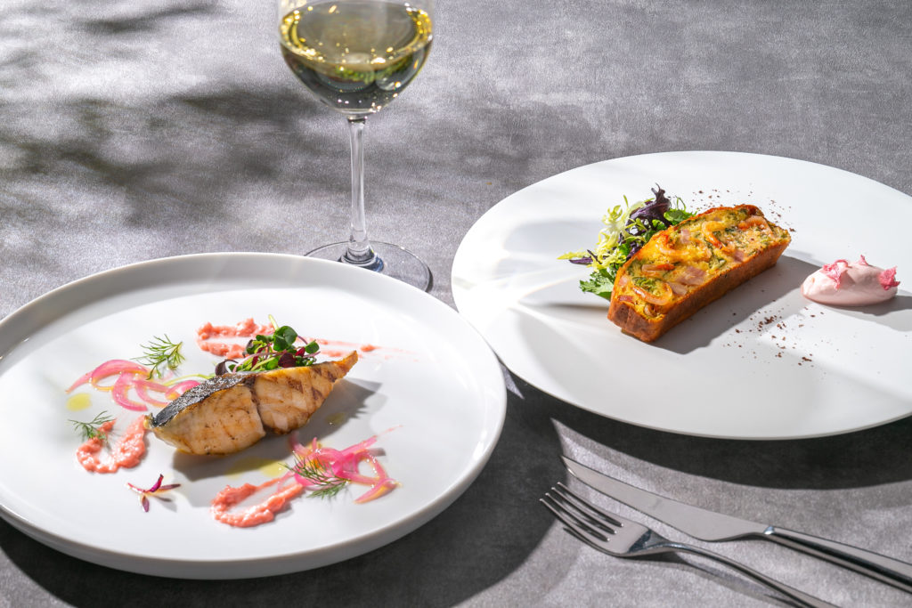 料理は春の訪れを感じさせる内容で、前菜は週替わりで「桜海老と菜の花のケークサレ」などが用意されます。メインディッシュには、旬のサワラをグリルし梅肉白ワインソースで仕上げた「サワラのグリル 梅肉白ワインソース」などがラインナップされます。
