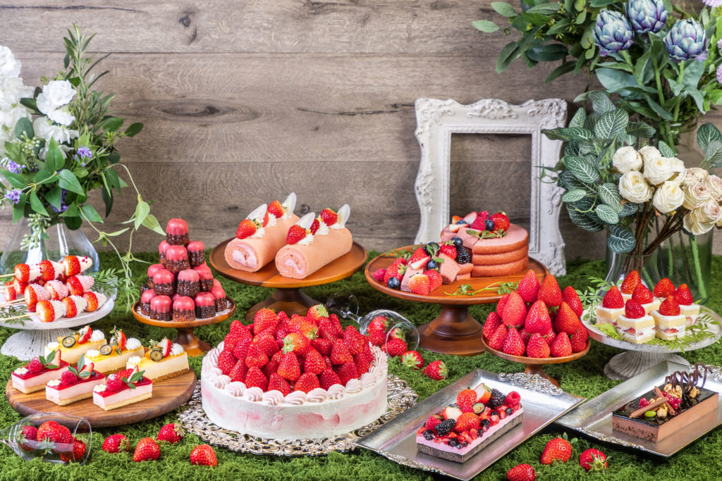 このランチでは、好みに合わせて選べる前菜、スープ、メインディッシュに加えて、現在開催中の「冬のプリフィックスランチ」で好評を得たいちごデザートブッフェが、春の期間も継続して提供されます。デザートブッフェでは、4銘柄のいちごを食べ比べできる「いちご狩り」をはじめ、いちごショートケーキやいちごロールケーキなどの定番スイーツ、さらにはシェフサービスによる「いちごのブロシェット」も登場します。