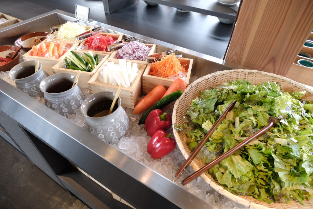 『くちかほう』は、料亭や割烹で経験を積んだ料理人が腕を振るい、無農薬野菜や旬の食材を用いた手作りの和食を提供するビュッフェレストランです。揚げたての天婦羅や麦とろ飯、ご飯に合うおばんざいが名物で、人気の天婦羅や野菜の食べ放題を楽しめます。また、土日祝限定で5歳までの子どもが無料で利用できる「子ども専用ビュッフェコーナー」も設置されており、家族連れへの配慮もなされています。