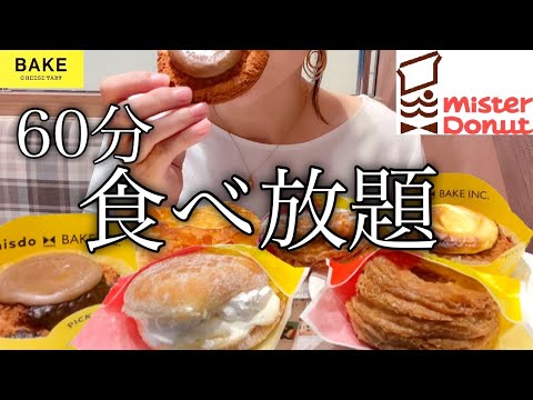 ミスド食べ放題60分!新作ベイクコラボドーナツ全種類!パイ3種類食べ尽くす!!※カロリー表示あり【スイーツちゃんねるあんみつの食レポ】
