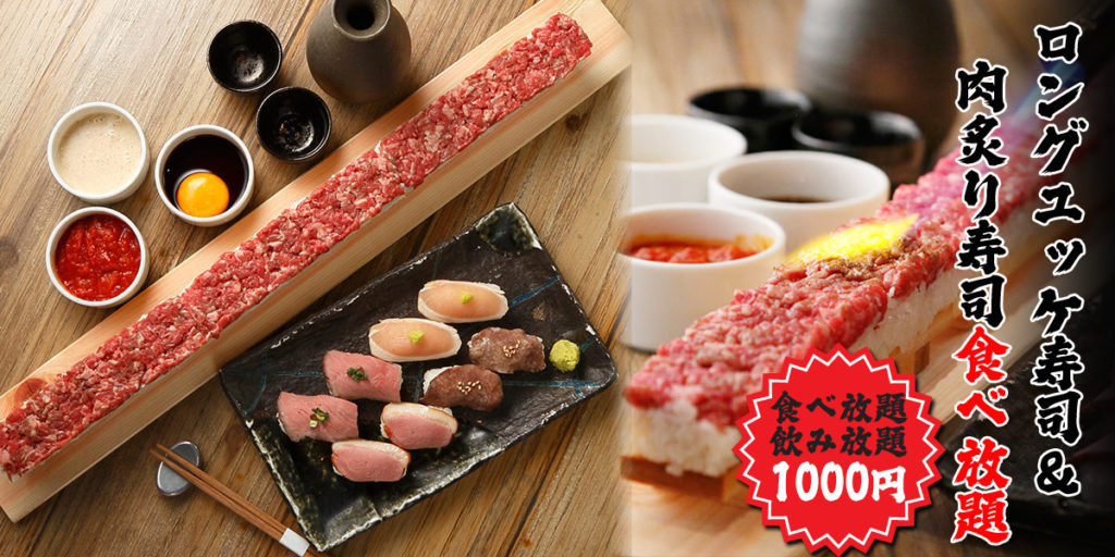 ディー・アール(本社:東京都港区)は、2021年6月6日(日)~6月20日までの間、「緊急事態宣言でも満腹満足!!ロングユッケ寿司&肉炙り寿司食べ飲み放題1000円」を開催中です。18時半までの入店のお客様限定で、ロングユッケ寿司付き肉炙り寿司が食べ放題。更にソフトドリンク飲み放題がついて1000円(税込)で提供となっています。
