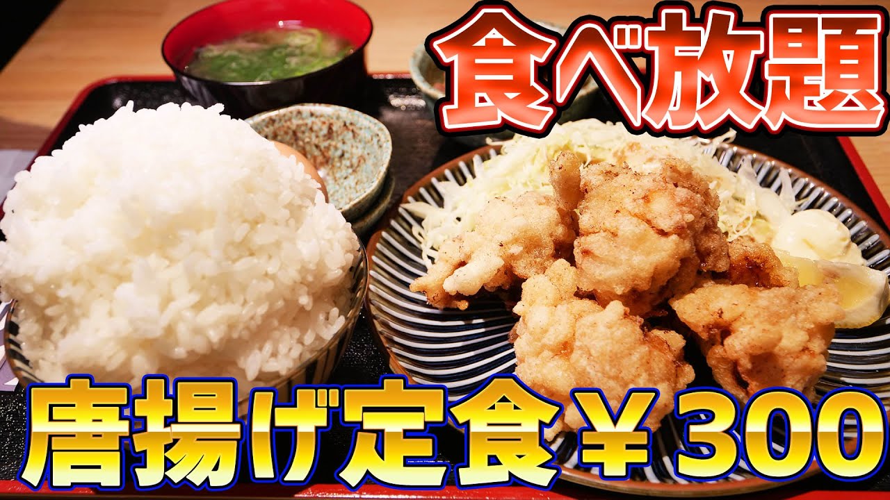 【食べ放題】ご飯とカレーおかわり無料の唐揚げ定食300円を大食い!