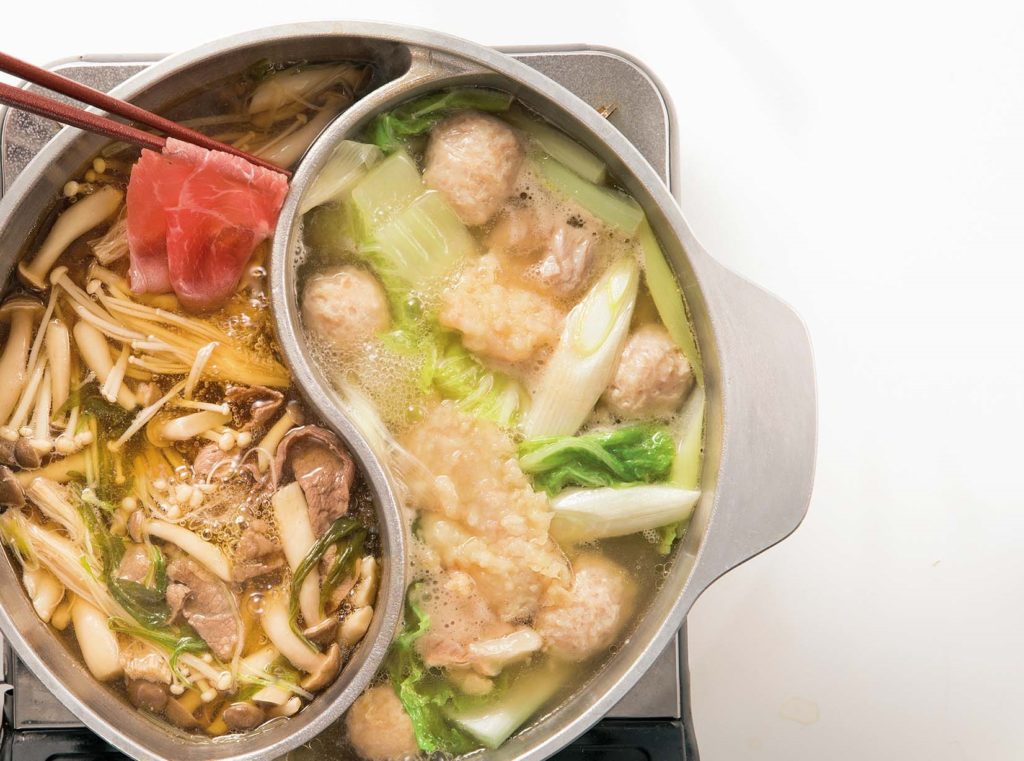 お寿司や牛ロースステーキ、海老天ぷらなどオーダー毎に調理する出来立ての料理など鍋具材と合せて100種類以上が食べ放題。