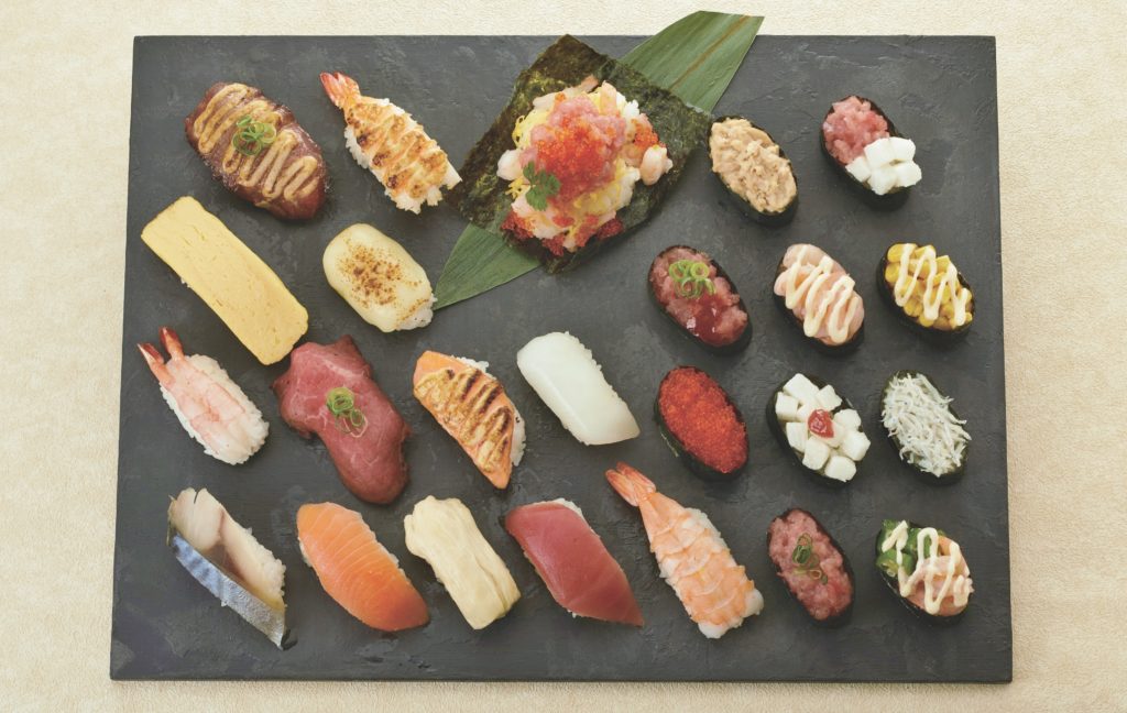 炙り寿司は、サーモンや海老にマヨネーズをトッピングし、店内炙りで提供するので芳ばしい香りもお楽しめます。お寿司は全部で24種類。お好きなものをお好きなだけ頼めます。さらに、自分で作れる「ソフトクリーム」も食べ放題です。