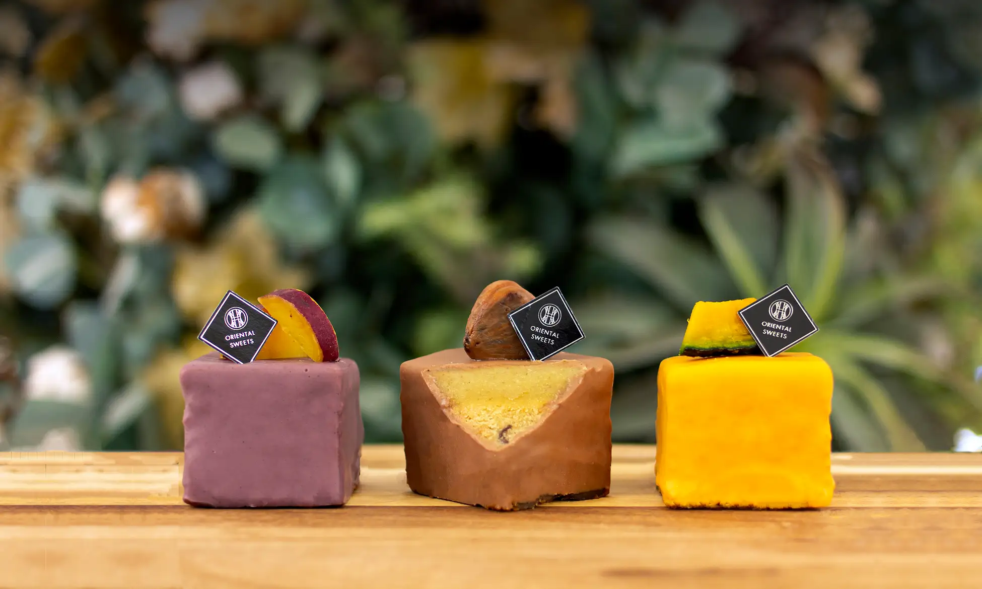 抹茶とさつま芋のシフォン / 栗のショートケーキ / 栗とナッツのチョコケーキ / かぼちゃのチーズケーキ / 紫芋のモンブラン / 栗のモンブラン / かぼちゃのモンブラン / 紫芋のシュークリーム / かぼちゃのケーキ /りんごタルト / マロンパイ / マロンムース / 栗のパンナコッタ / かぼちゃのブリュレ / かぼちゃのミルフィーユ / かぼちゃのブラウニー / 抹茶のブラウニー / バクラバ / パンプキンと根菜のサラダ / パンプキンとポテトのサンドウィッチ / 抹茶カキ氷 / ブランド南瓜&さつま芋の天ぷら / わらび餅 / 八女抹茶そば / かしわおにぎり / 羊かん盛り合わせ / 琥珀糖 / たこ焼き実演 / 茸のクリームスープ / ごぼうフライ / ポテトフライ / 豚の角煮 / サーモンのトマトクリームパスタ / ポテトのドフィノアグラタン / ポテトニョッキのチーズソース 等